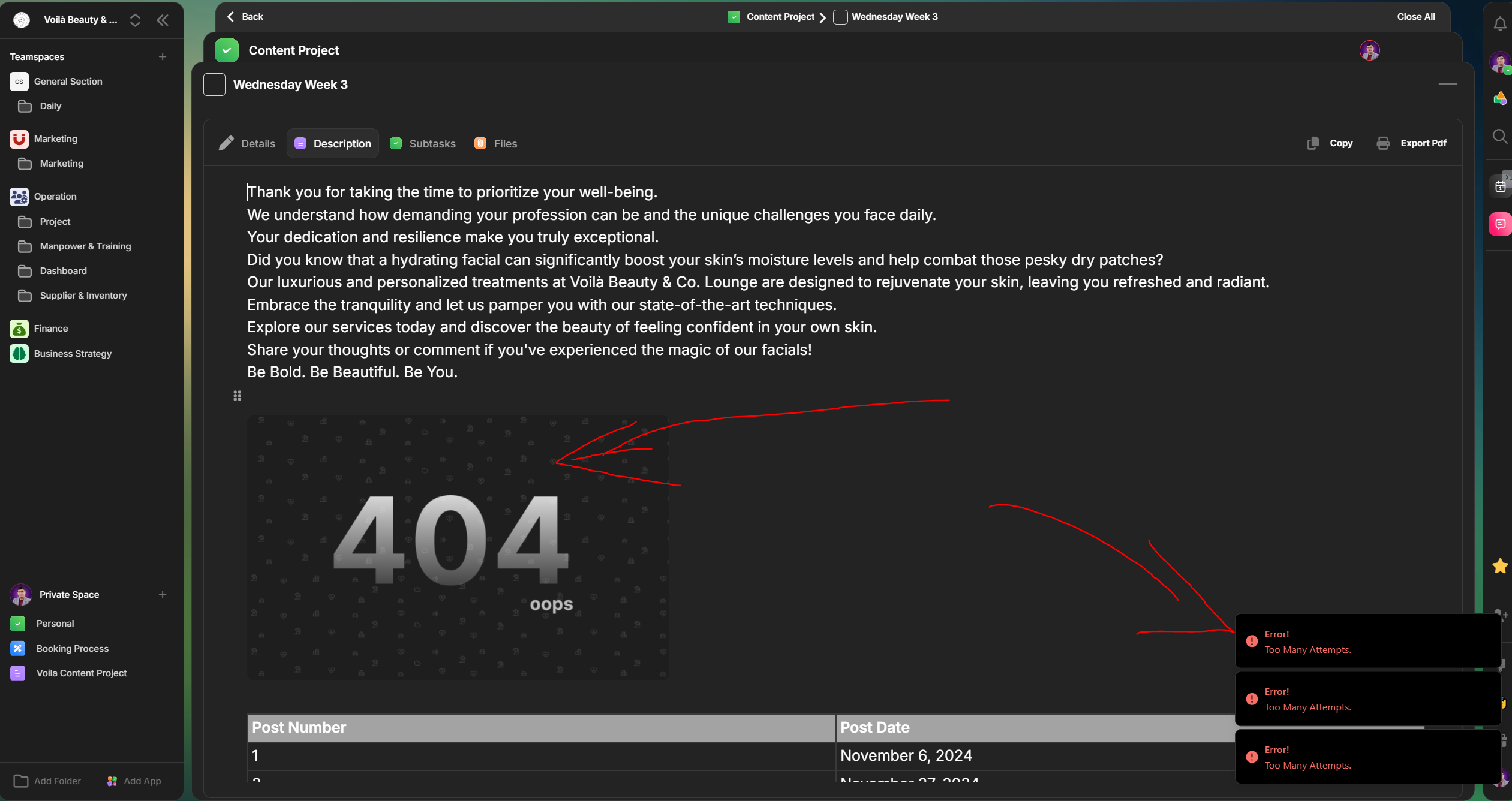 I am a bit annoyed and frustrated with the app's bug. It's affecting my work. The app is extremely laggy and constantly displays error messages in both the desktop and browser versions.